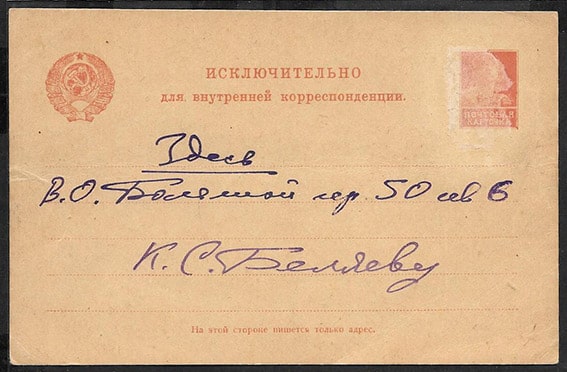 Почтовая карточка исключительно для внутренне1 корреспонденции, 1923 год