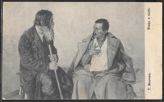 Почтовая карточка. П.п. Худ. Т. Мозгов. Отец и сын