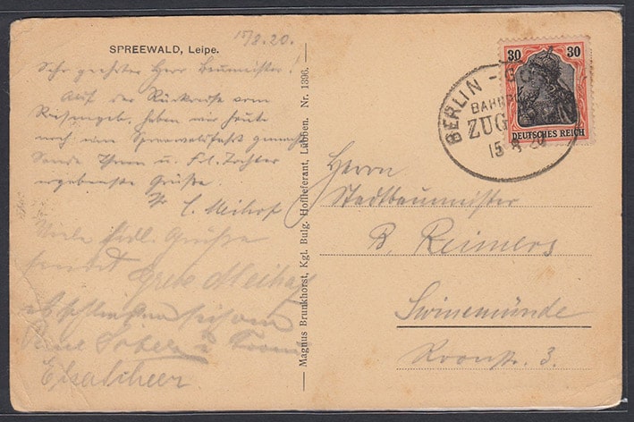 Почтовая карточка прошла почту 1920 год. Германия, Рейх. Деревня