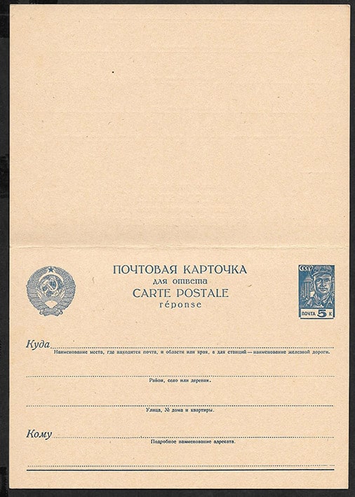 Почтовая карточка с оплаченным ответом, 5 копеек