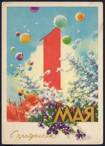 Почтовая карточка С праздником 1 мая, прошло почту 1959 г.
