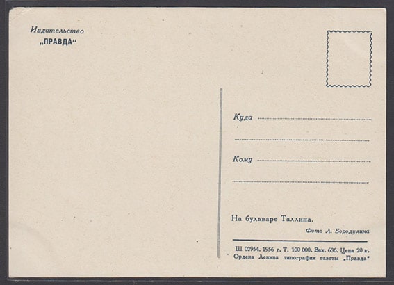 Почтовая карточка. Таллин. На бульваре Таллина, 1956 год