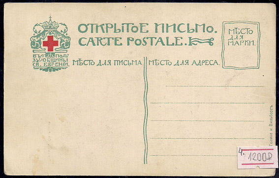 Почтовая карточка. В пользу Общ. Св. Евгении. Гатчина. Столовая. 1915 г.