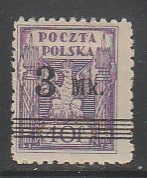 Польша 1921 год. Стандарт. Орёл, надпечатка нового номинала, 1 марка (наклейка)