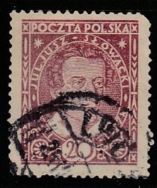 Польша 1927 год. Юлиуш Словацкий, польский поэт и драматург, 1 марка (гашёная) (б/угла) (10/1,5)