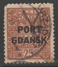 Польша 1929 год. Стандарт. Государственный герб, ном. 25 Gr, НДП, 1 марка из трёх (гашёная) Почтовое отделение порта Гданьска. (20/2,5)