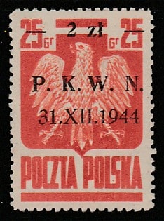 Польша 1944 год. Государственный герб, НДП, ном. 2 Zl / 25 Gr, 1 марка из трёх. (3,5)