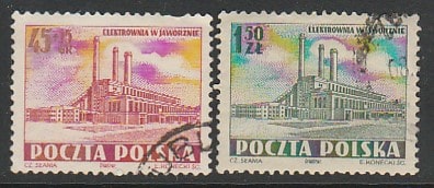 Польша 1952 год. Электростанция в Явожно, 2 марки из трёх (гашёные)