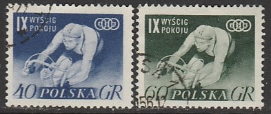 Польша 1956 год. Велогонка, 2 марки (гашёные)