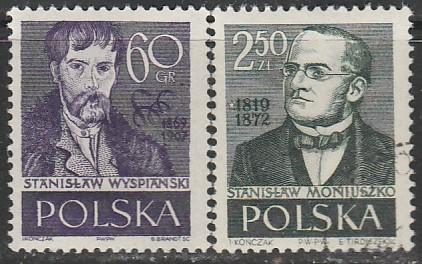 Польша 1958 год. Автопортрет Станислава Вышперского, композитор Станислав Монюшко, 2 гашёные марки