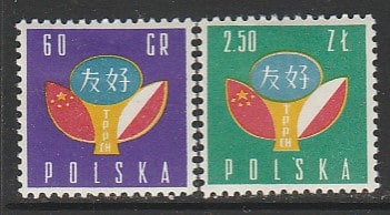 Польша 1959 год. Польско-китайское сотрудничество. 2 марки (наклейка)