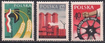 Польша 1959 год. Съезд Польской Рабочей Партии. 3 марки