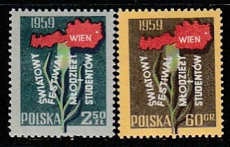 Польша 1959 год. VII Всемирный фестиваль молодёжи и студентов в Вене, 2 марки (наклейка)
