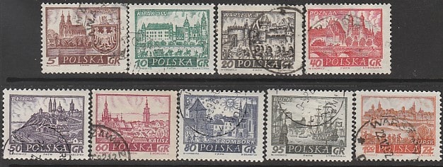 Польша 1960 год. Исторические города, 9 марок (гашёные)
