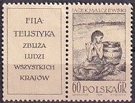 Польша 1962 год. Картина Яцека Мальчевского "Отравленный фонтан", 1 марка с купоном