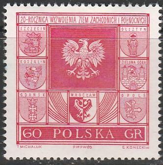 Польша 1965 год. 20 лет присоединению северных и западных территорий, 1 марка