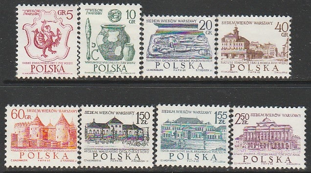 Польша 1965 год. 700 лет Варшаве, 8 марок (наклейка)