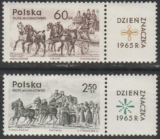 Польша 1965 год. Картина Петра Михаловского "Дилижанс", 2 марки с купоном наклейка