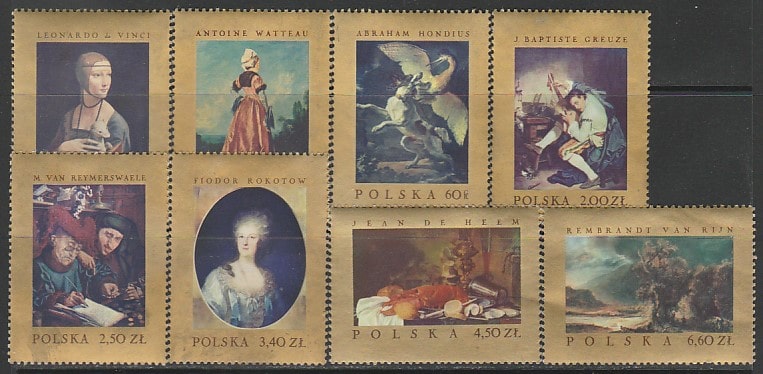Польша 1967 год. Картины европейских мастеров, 8 марок (наклейка) (7/2)