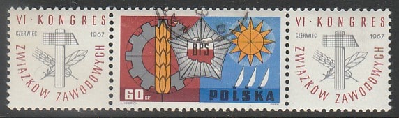 Польша 1967 год. VI Конгресс профсоюзов, 1 марка с купонами (гашёная)