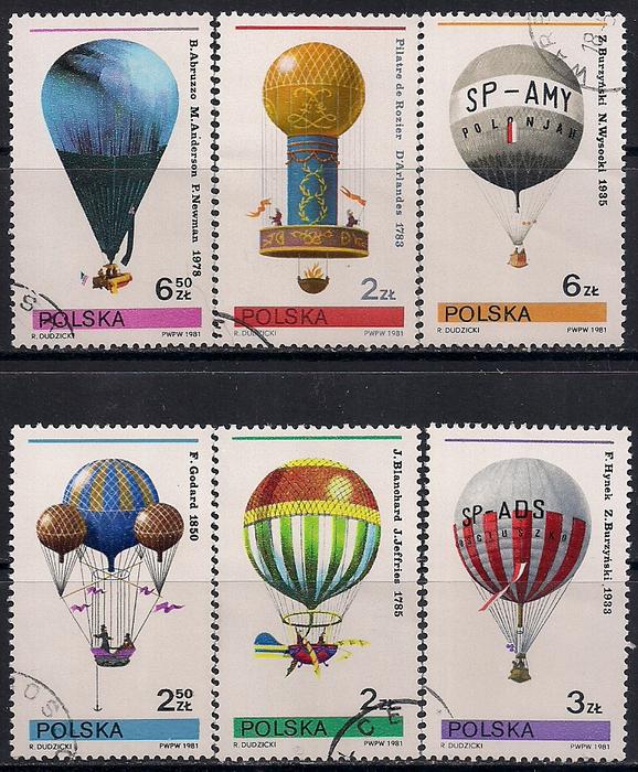 Польша 1981 год. Воздушные шары. 6 гашеных марок