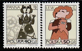Польша 1996 год. Стандарт. Знаки зодиака. Дева и Лев, 2 марки.