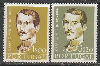 Португалия 1957 год. Поэт Сезариу Верде, 2 марки (наклейка) (3,2/1,8)