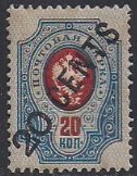 Провизории Бейрута 1918 год. НДП "20 cents" на марке ном. 20 копеек. 1 марка из серии