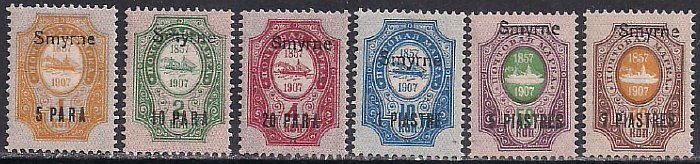Провизории России 1857-1907 год. НДП "Smyrne". Набор (8) из 6 марок