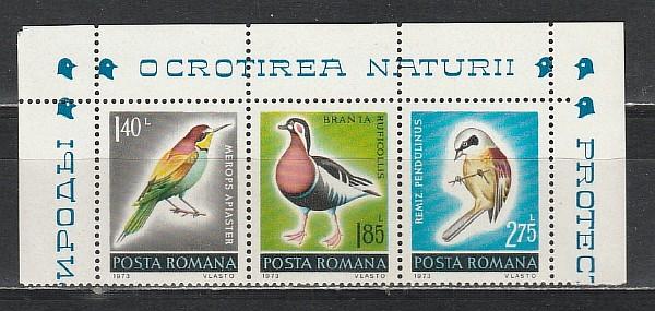 Птицы, Румыния 1973 г, 3 марки сцепка