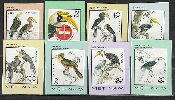 Птицы, Вьетнам 1977, 8 беззубц. марок