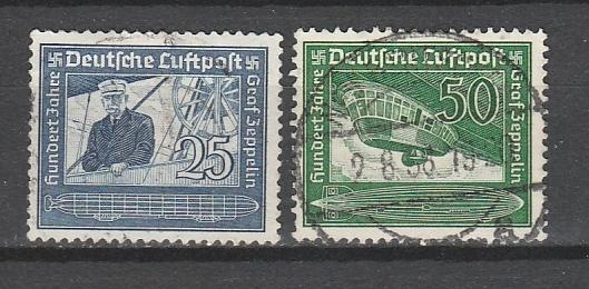 Рейх 1938 год, 100 лет Графу Цеппелину, 2 гашёные марки (55/9/4)