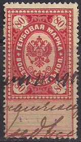 Россия 1887 год. Гербовая марка, 80 копеек, погашена