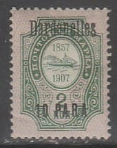 Россия 1909-1910 год. "Русский Левант". РОПиТ. НДП. Дарданеллы, 10 ра/2 к, 1 марка из серии.