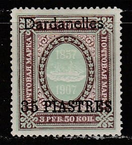 Россия 1909-1910 год. "Русский Левант". РОПиТ. НДП. Дарданеллы, 35 рi/3,5 р, 1 марка из серии.