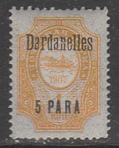 Россия 1909-1910 год. "Русский Левант". РОПиТ. НДП. Дарданеллы, 5 ра/1 к, 1 марка из серии.