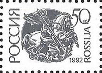 Россия 1992 год. Стандарт. 50 копеек, 1 марка. Простая бумага. Перфорация гребенка 12 1/4 : 11 3/4