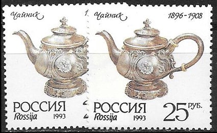 Россия 1993 год. Разновидность - белая и кремовая бумага. Серебро в музеях Московского Кремля