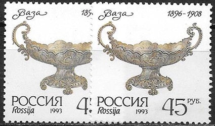 Россия 1993 год. Разновидность - белая и кремовая бумага. Серебро в музеях Московского Кремля