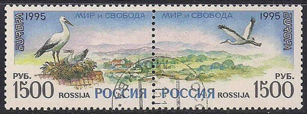 Россия 1995 год. Мир и свобода. Аисты. Гашеная сцепка