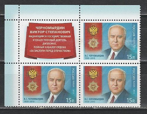 Россия 2013 г, В. Черномырдин, квартблок с купоном