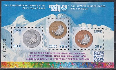 Россия,2014, Олимпиада в Сочи, Надпечатка, блок