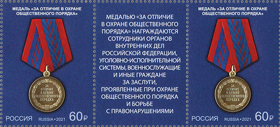 Россия 2021 год. Медаль - За отличие в охране общественного порядка, сцепка с купоном