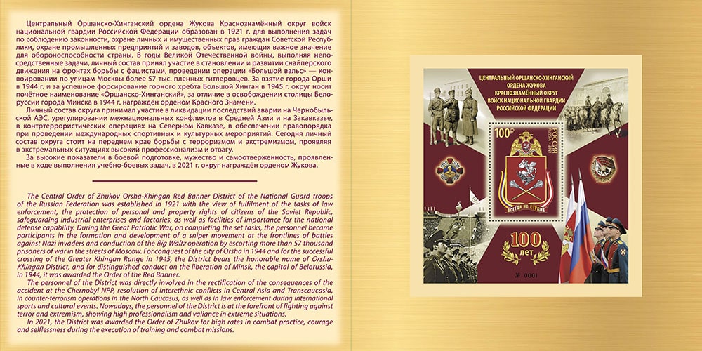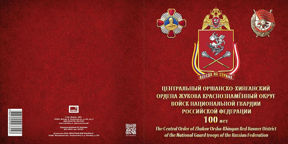 Россия 2021 год. Сувенирный набор в художественной обложке "100 лет Центральному Оршанско-Хинганскому Краснознамённому округу войск национальной гвардии Российской Федерации" (2-я форма выпуска)