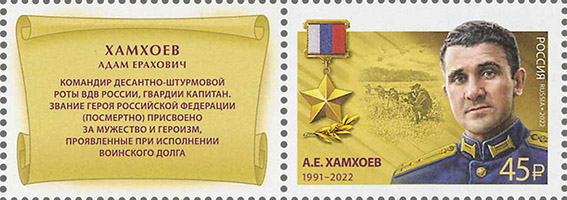 Россия 2022 год. Герой Российской Федерации А.Е. Хамхоев (1991–2022), марка с купоном
