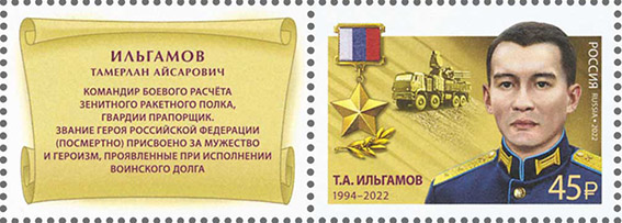 Россия 2022 год. Герой Российской Федерации Т.А. Ильгамов (1994–2022), марка с купоном