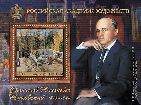 Россия 2023 год. Совместный выпуск Российской Федерации и Республики Беларусь. Серия «Российская академия художеств». 150 лет со дня рождения С.Ю. Жуковского (1873–1944), художника, блок