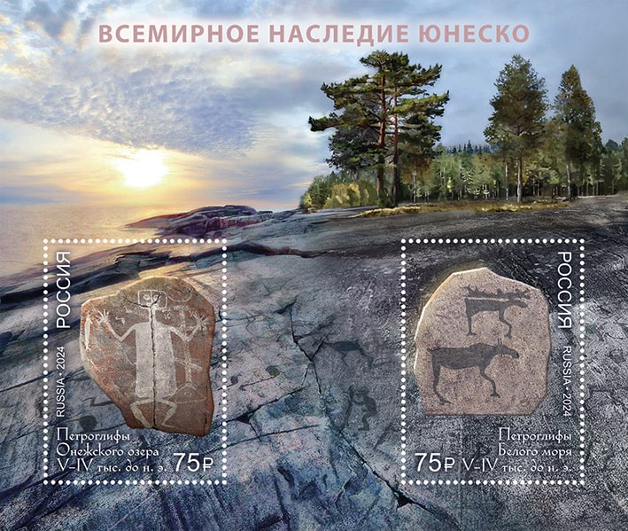 Россия 2024 год. Всемирное наследие ЮНЕСКО. Петроглифы Онежского озера и Белого моря, блок