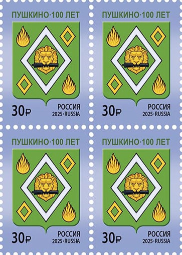 Россия 2025 год. 100 лет г. Пушкино Московской области, квартблок (ном. 30 р.)