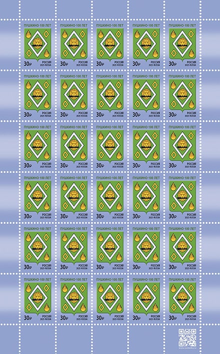 Россия 2025 год. 100 лет г. Пушкино Московской области, лист (ном. 30 р.)